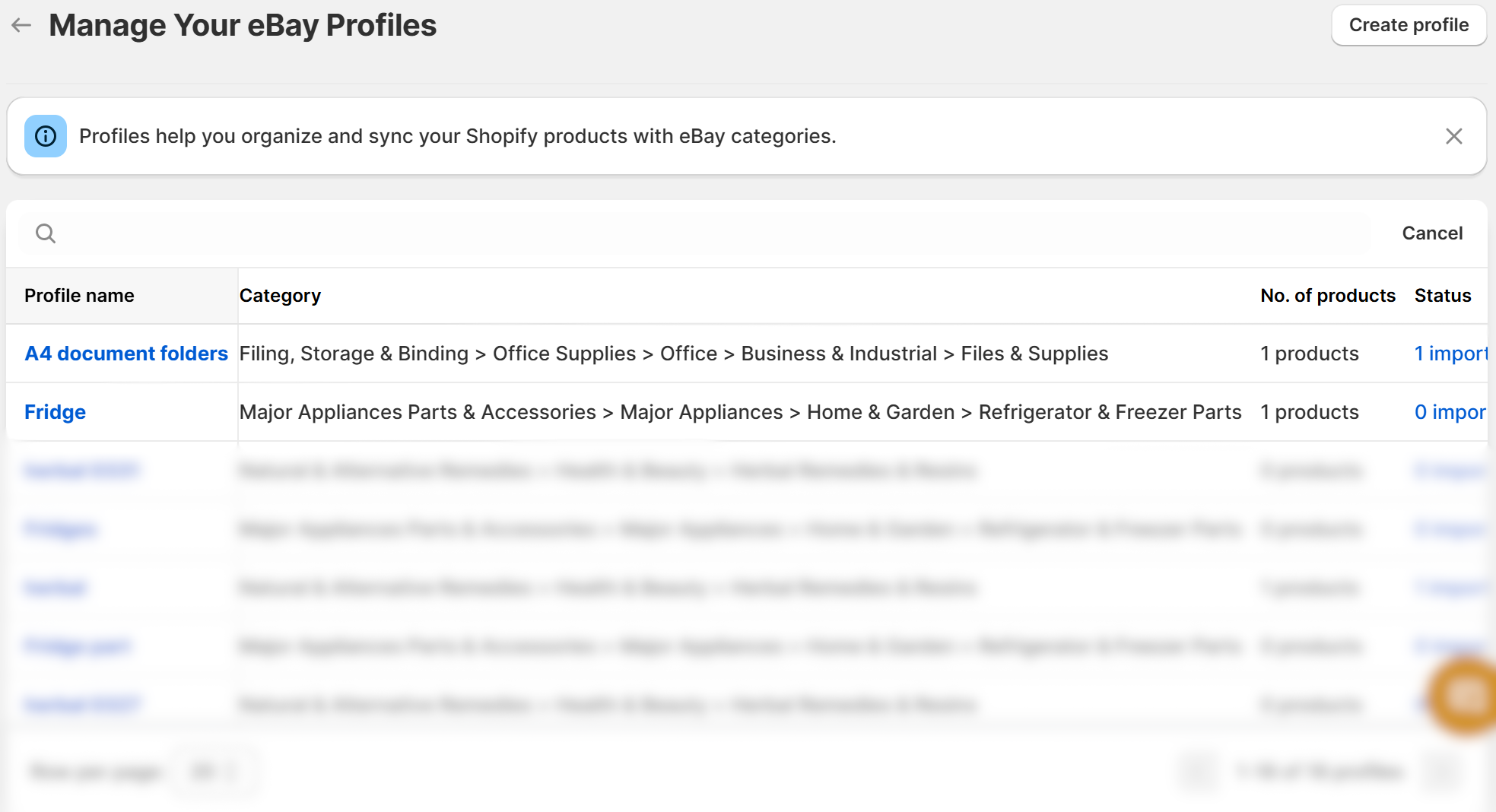 Create and edit upload profiles to control how your products are imported to eBay, including pricing, categories, and settings.