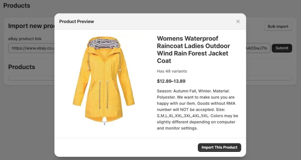 With Ritafy, you can effortlessly import and sell products from eBay with a single click.