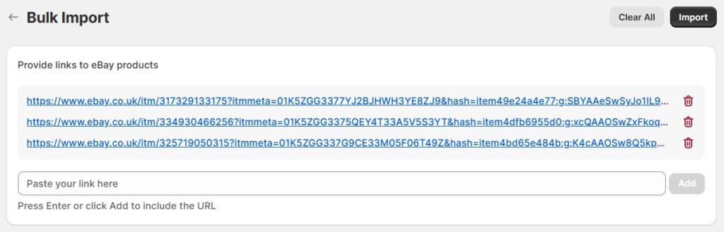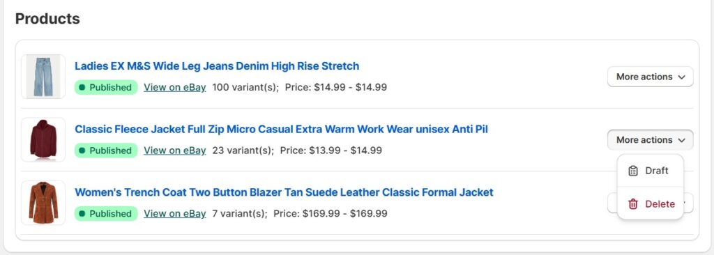 Easily control your imported items; save them as drafts for later or delete unwanted products.
